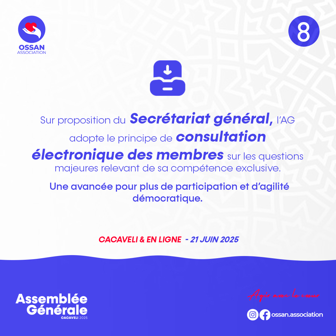 Adoption du principe de consultation électronique pour garantir la participation active de tous les membres, y compris ceux éloignés géographiquement.